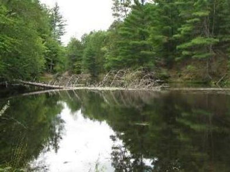 Seaton Creek Campground adjoins Seaton Creek at the upper end of the backwater of Hodenpyl Dam Pond on the Big Manistee River in Manistee National Forest. The campground is surrounded by mostly pine forest with rustic sites situated near the Hodenpyl Backwater. The terrain is characterized as hilly with a mix of hardwoods and conifers, located near Briar Hill, which has the second-highest elevation in Michigan's lower peninsula. The surrounding waters offer excellent fishing opportunities for both panfish including perch, bluegill, crappie, and sunfish, as well as game fish such as trout, bass, pike, and salmon. Nearby tributaries including Seaton Creek, Small Creek, Preston Creek, and Cripple Creek host brown and brook trout. Kayakers may access the campground by traveling up the shallow Seaton Creek, though canoeing is better suited for the Hodenpyl Backwaters and Big Manistee River. The campground serves as a trailhead for the Manistee River Trail, with a connector trail directly from the site. The North Country National Scenic Trail can be reached by crossing the suspension bridge over the Manistee River. The Upper Branch Trailhead is also nearby, providing access to extensive hiking opportunities in the national forest.
