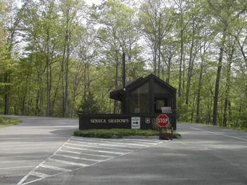 Seneca Shadows Campground is the newest developed campground in the Spruce Knob-Seneca Rocks National Recreation Area, positioned in a picturesque valley overlooking the dramatic 900-foot Seneca Rocks formation. The campground is comprised of 11 standard camping units with electric hookups, 2 double camping units with electric hookups, 23 standard camping units without electric, 2 double camping units without electric, 40 walk-in tent sites, and 3 group tent sites. All sites feature drinking water, fire rings, lantern posts, and picnic tables, with paved spurs for standard camping units. The facility includes modern amenities such as four multiple-toilet flush restrooms with showers, multiple vault restrooms, an RV dump station, trash dumpsters throughout, and an outdoor amphitheater equipped with lighting, sound equipment, and seating. The campground is surrounded by mountains on both the east and west, with most campsites offering outstanding views of Seneca Rocks. Across the street from the campground, rock climbers and hikers can access the trail leading to the top of Seneca Rocks, one of the East Coast's premier rock climbing destinations. The North Fork South Branch Potomac River flows nearby, providing catch-and-release fishing opportunities. The Seneca Rocks Visitor Center features educational displays, viewing platforms, and a gift shop. The campground sits within the ecologically diverse Monongahela National Forest, where elevations range from 1,000 to 4,863 feet and terrain variations support rich biodiversity.