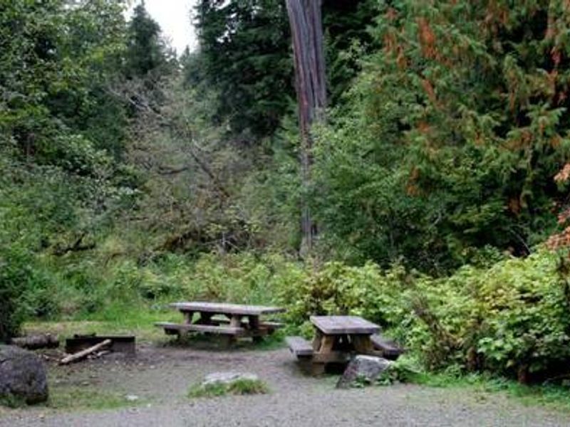 Shannon Creek Campground occupies a forested slope descending to the shores of Baker Lake in the Mt. Baker-Snoqualmie National Forest, approximately 23 miles north of State Route 20. The campground features 19 sites divided between 17 single and 2 double campsites, with some nestled directly in the trees near the lakeshore. A small gravel boat ramp provides lake access, though it's not suitable for larger boats, and during Sockeye fishing season boat launching is restricted to campers only. The setting showcases the spectacular scenery of the North Cascades, with views across Baker Lake to the Noisy Creek drainage and Noisy-Diobsud Wilderness Area. On clear days, Mt. Baker's glacier-covered summit is visible, rising to 10,781 feet. The campground serves as a base for exploring nearby trails, including the family-friendly Baker Lake Trail that contours above the eastern shoreline through majestic old-growth forest, and the Baker River Trail that leads into North Cascades National Park. Baker Lake itself is a nine-mile reservoir popular for boating, water skiing, fishing for kokanee, rainbow trout, sockeye salmon, and other species, plus swimming in summer months.
