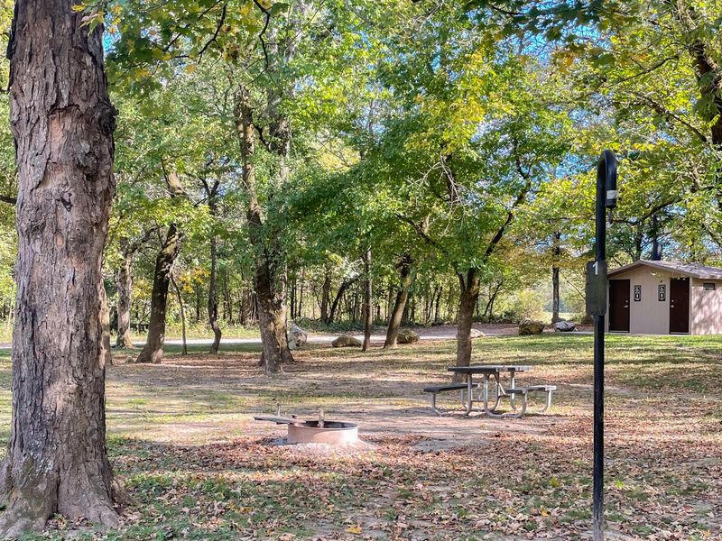 Shawnee Creek Campground sits at the scenic junction of Shawnee Creek and the Jacks Fork River, offering a blend of sunny and shaded sites perfect for families and river enthusiasts. This six-site backcountry campground provides a more primitive camping experience while maintaining convenient amenities like vault toilets. The shallow waters of Shawnee Creek are ideal for wading and exploration, particularly popular with children and their parents. A canoe launch provides direct river access for paddlers exploring the Jacks Fork. One of the campground's most unique features is the nearby field where wild horses are frequently spotted grazing or running, offering visitors a rare glimpse at this living cultural resource of the Ozark National Scenic Riverways. Access to the campground requires driving approximately two miles on gravel roads from Highway 106, about 12 minutes east of Eminence. The campground features vault toilets but no water, so visitors should bring adequate supplies. Reservations are required and can be made through Recreation.gov, with payment accepted via the Scan & Pay system on the Recreation.gov mobile app.