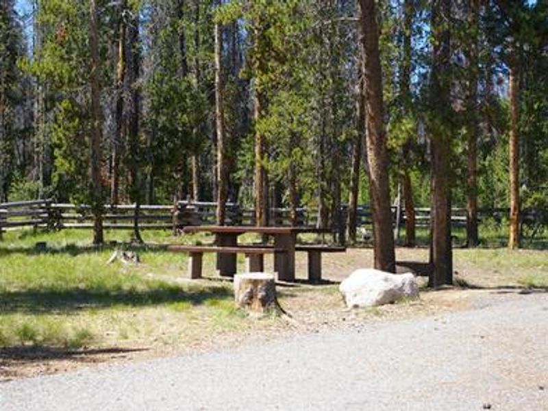 Located in a beautiful valley at 6,670 feet elevation in the Sawtooth National Recreation Area, Sheep Trail Campground offers a peaceful mountain retreat at the foot of the Sawtooth Range. The campground features one group site that can be divided into four smaller sites, accommodating up to 40 people total. When the group site is not reserved, individual sites are available on a first-come, first-served basis. The campground is surrounded by a mixed stand of pines providing partial shade, with abundant summer wildflowers and a small creek running adjacent to the property. Temperatures are cool, with average summer highs of 78 degrees and lows of 40 degrees. The Idaho Centennial Trail passes directly through the campground, offering immediate access to an estimated 750 miles of trails crisscrossing the valley and surrounding mountains. Expansive Elk Meadow is near the campground, providing excellent opportunities for bird and wildlife watching. Numerous lakes and streams, including the Salmon River, Stanley Lake, and Redfish Lake, are nearby and offer outstanding rainbow and native Westslope cutthroat trout fishing, along with boating, water skiing, canoeing, and kayaking opportunities.