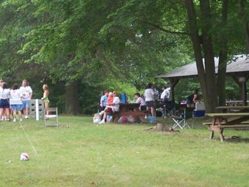 The Shenango Lakeside Picnic Shelter is a covered group facility located within the Shenango Recreation Area at Shenango River Lake, a U.S. Army Corps of Engineers property. The shelter accommodates between 42-56 people depending on table configuration and is situated adjacent to the lake's main campground. Electric service is available with a paid reservation, and grills are provided on-site for cooking. The facility includes nearby basketball and volleyball courts for group activities. Shenango Lake stretches 11 miles up the Shenango River, covering over 11,000 acres surrounded by northern hardwood forests of black cherry, beech, maple, and hemlock. The lake is popular for fishing, with abundant crappie, bass, walleye, catfish, and muskellunge. Boating areas accommodate both unlimited horsepower operation and restricted zones. Wildlife viewing opportunities include deer, turkey, osprey, and bald eagles. Flush toilets and drinking water are provided seasonally at the nearby boat launch restroom. The recreation area is part of a larger system that includes the Shenango Water Trail, historic Kidds Mill Covered Bridge, and remnants of the Erie Extension Canal. Research chestnut tree orchards managed with the American Chestnut Foundation are located at Shenango and Mahaney recreation areas. The shelter is ideal for family reunions and group gatherings seeking a lakeside setting with recreational amenities.