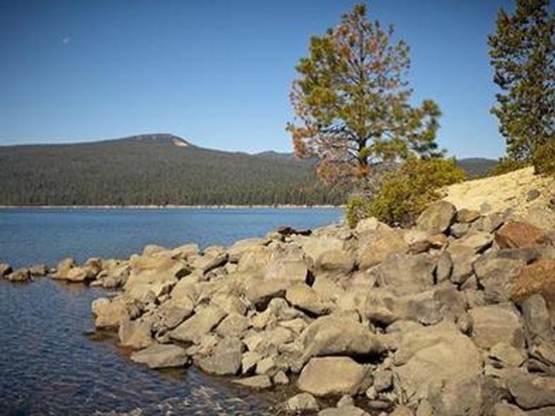 Simax Group Campground is located on the northeast shore of Crescent Lake in Deschutes National Forest, offering some of the most beautiful scenery in central Oregon. Designed as a fully accessible campground, the facility features four group sites accommodating up to 40 people each, plus a large picnic pavilion for day use that can host up to 50 people. The campground is surrounded by towering lodgepole pine, mountain hemlock, fir, and spruce trees, providing a lush forest setting. Crescent Lake, nestled in a naturally glaciated basin behind a moraine dam, lies east of the Cascade Mountain Range. Its brilliant blue-green water, sandy beaches, and exceptional water temperature for a high-elevation lake make it ideal for water skiing, sailing, windsurfing, and swimming. Anglers can fish from boat or shoreline for kokanee salmon, mackinaw, rainbow trout, brown trout, and mountain whitefish, with summer months offering the best fishing. The Fawn Lake Trail begins at the northeast end of the lake, offering a 4.7-mile one-way hike through diverse forest landscapes with views of Redtop and Lakeview Mountains. The campground provides vault toilets, potable water from faucets, and each site includes picnic tables and fire pits. Maximum site spur length is 40 feet. Volcanic activity throughout the surrounding area is evident in the landscape, showcasing cinder cones, calderas, and lava flows. A nearby resort on Crescent Lake offers lodging, a general store, and equipment rentals.