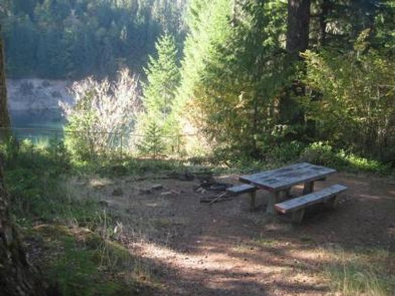 Slide Creek Campground provides a beautiful wooded setting for camping along the east bank of Cougar Reservoir in the Willamette National Forest, just 50 miles from Eugene, Oregon. The campground features 16 sites (14 single and 2 double) nestled among mixed conifers at 1,700 feet elevation, with some sites offering views of the 1,280-acre reservoir. Both campground guests and day-use visitors have access to drinking water via a hand pump, vault toilets, a boat ramp with trailer parking, and a swimming beach. Each campsite can accommodate tents, trailers, or RVs and comes equipped with a campfire ring and picnic table. The reservoir attracts water skiers, swimmers, boaters, and anglers pursuing quality rainbow trout. The campground sits close to a large network of hiking trails in the Olallie Trail Area, with half the trails open to mountain biking. Nearby Terwilliger Hot Springs offers five pristine soaking pools fed by the Rider Creek waterfall. Wildlife in the area includes Roosevelt elk, black bear, bald eagles, black-tailed deer, and bobcats.
