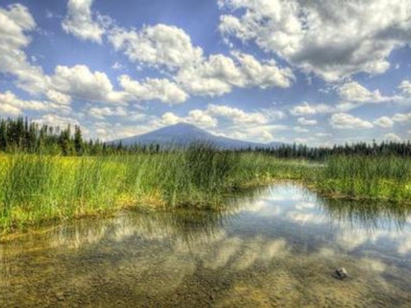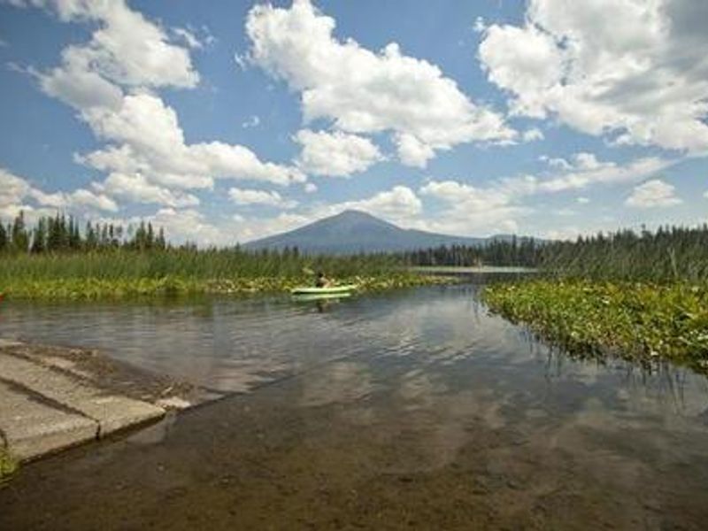 South Campground is located on Hosmer Lake in the Deschutes National Forest along the Cascade Lakes Scenic Byway. This campground caters to anglers and paddlers seeking a quieter mountain lake experience. Hosmer Lake is designated as fly-fishing only and is well known for its visible populations of Atlantic salmon, brook trout, and rainbow trout in the shallow, clear waters. The lake offers spectacular views of Mt. Bachelor, South Sister, and Broken Top. The campground provides basic amenities including vault toilets, picnic tables, and fire pits at each site, but campers must bring their own drinking water as none is available on-site. Shore access to the lake is limited due to marshy vegetation, making a canoe or kayak the best way to experience the water. A boat ramp is located nearby. The campground can accommodate RVs and trailers with a maximum spur length of 40 feet, though no hookups are available. South Campground serves as an excellent base for exploring the Cascade Lakes Scenic Byway, which winds 66 miles through the Cascade Range past alpine lakes and snow-capped peaks. Nearby trails offer opportunities for hiking and horseback riding, while wildlife viewing is common in this scenic mountain setting.