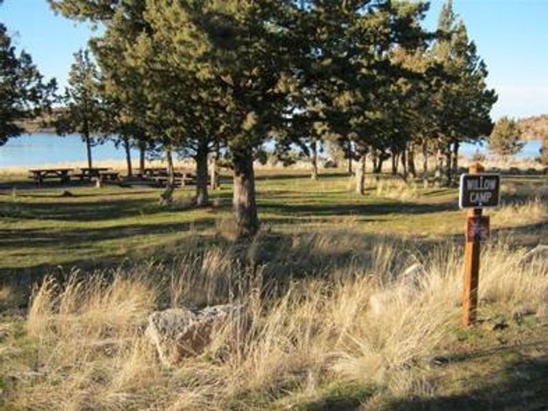 South Shore Group Sites is the only designated group campground at Haystack Reservoir, located in the scenic high desert of Crooked River National Grassland near Madras, Oregon. The facility features three primitive group sites (Willow, Cottonwood, and a third site) that are positioned out of sight from each other for privacy. Each group site can accommodate up to 50 people with space for 25 RVs or tents, making it ideal for large gatherings such as family reunions or climbing groups. The campground provides multiple picnic tables, campfire rings, and vault toilets at each site, with ample parking for vehicles and trailers. The high desert setting features juniper trees and sagebrush at 3,000 feet elevation, offering expansive views of Mt. Jefferson and excellent stargazing opportunities under wide open skies. Eagles and other birds frequent the reservoir shoreline. Haystack Reservoir offers fishing for kokanee, rainbow trout, largemouth bass, black crappie, and brown bullhead catfish. The lake also allows motorized boating and swimming, with boat launches located at nearby Haystack and West Shore day-use areas. The surrounding national grassland provides opportunities for hunting, hiking, horseback riding, mountain biking, and off-highway vehicle riding. Smith Rock State Park, renowned for its world-class rock climbing routes, is a short drive from the campground. The facility is managed by Crook County Parks and Recreation District.