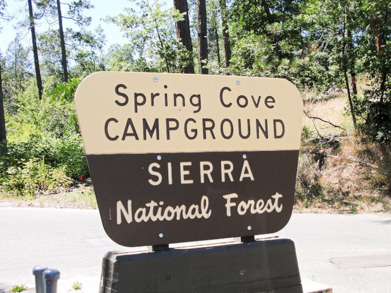 Spring Cove Campground is situated across the street from Bass Lake in the Sierra National Forest, nestled within a shaded grove of oak, pine and cedar trees at 3,400 feet elevation. The campground features 62 campsites that are closely clustered together, with both paved and dirt-surfaced parking spurs. Due to tight turns and configurations throughout the facility, the campground is best suited for tents and small RVs with a maximum vehicle length of 30 feet. Large travel trailers and RVs are not recommended. Bass Lake provides abundant recreational opportunities including a beach and boat ramp for swimming, motorized boating, canoeing, kayaking, water skiing, sailing and fishing for bass, trout, bluegill and catfish. The 2.6-mile Spring Cove Trail can be accessed directly from the campground. Other nearby trails include Willow Creek (2.7 miles), Goat Mountain (2.6 miles) and the Way-of-the-Mono Interpretive Trail (1 mile). Educational programs are offered on weekends during summer months, with schedules posted at the Bass Lake office and campgrounds. The campground is located in the Bass Lake Ranger District, an area known for its variety of fish as well as the bald and golden eagles that make their home here. Yosemite National Park can be reached in under an hour, making it an ideal day trip destination. The facility is managed by California Land Management and includes on-site security and camp hosts during the operating season.