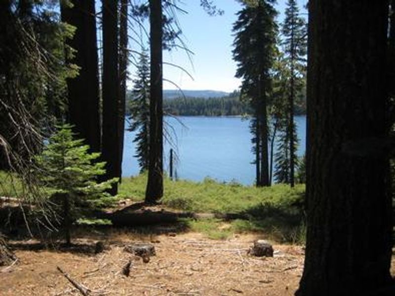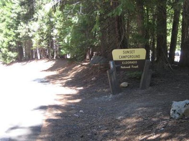 Sunset Campground is aptly named for its spectacular sunset views over Union Valley Reservoir, the largest lake in the Crystal Basin area of Eldorado National Forest. Located at 4,900 feet elevation among cedar and ponderosa pines, the campground offers 121 sites ranging from tent-only to sites that accommodate RVs, trailers, plus double and triple sites for larger groups. Some sites sit fully shaded under towering trees while others are positioned in meadow settings. The reservoir is the centerpiece for recreation, with sailing, motorized and non-motorized boating, waterskiing, and swimming all popular activities. Anglers can fish for rainbow, brown, and mackinaw trout, as well as kokanee salmon. The Union Valley Bike Trail stretches 4.8 miles along the eastern shore, connecting directly to the campground near the boat ramp. Nearby Bassi Falls Hiking Trail offers additional exploration opportunities. The Crystal Basin region preserves remnants of California's Gold Rush era from the 1800s. The campground provides full amenities including vault toilets, potable water, showers, a dump station, bear boxes, fire rings, and a boat ramp with boarding dock. A campground host is on-site during the season, and firewood is available for purchase.