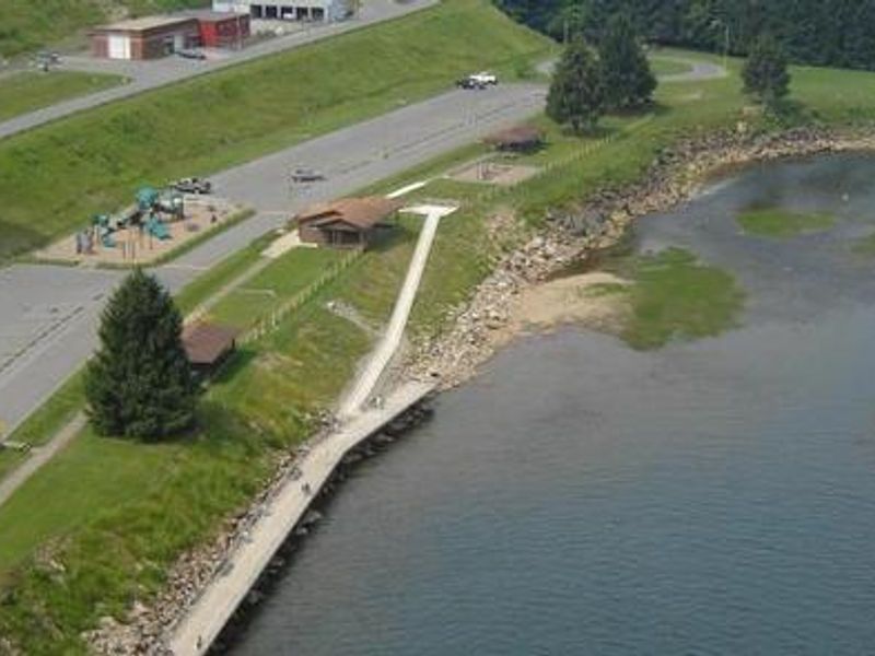 Sutton Lake Picnic Shelters provide five distinct group shelters in two scenic locations along Sutton Lake and the Elk River in central West Virginia. Shelters 1 and 2 occupy the Downstream Area below the impressive 210-foot Sutton Dam, overlooking the Elk River with its renowned muskie, walleye, and stocked trout fishing. Both shelters feature water and electric hookups, with Shelter 1 being ADA accessible. The Downstream Area includes a playground, fishing pier, small boat access, horseshoe pits, cornhole, ample parking, and accessible flush toilets. Shelters 3, 4, and 5 are located in the Bee Run Day Use Area, offering views of Sutton Lake as it winds 14 miles up the Elk River valley. These shelters also provide water and electric hookups, with Shelter 4 being ADA accessible. The Bee Run Area features a large swimming beach, playground, the nearby Sutton Lake Marina with rentals and concessions, flush toilets, and extensive parking. Each shelter accommodates six to eight picnic tables and includes a large charcoal grill. The lake covers 1,440 acres with 40 miles of shoreline surrounded by rolling hills forested with oak, hickory, poplar, and cherry. The area attracts abundant wildlife including deer, bears, turkeys, and waterfowl. Anglers find excellent fishing for bass, crappie, catfish, and sunfish. Fire roads and hunting trails in the surrounding Elk River Wildlife Management Area provide hiking and biking opportunities. Note that alcohol is prohibited at Sutton Lake.