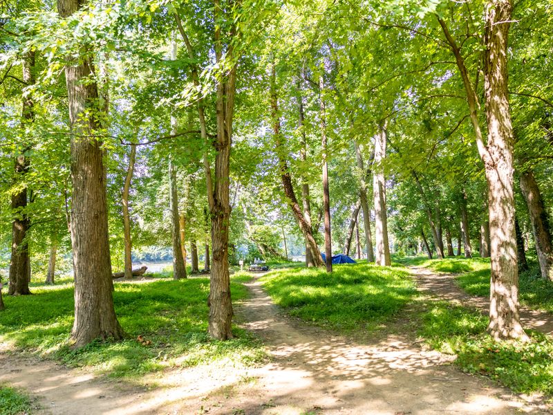 Swains Lock Hiker-Biker Campsite is one of 31 primitive camping areas distributed along the historic Chesapeake and Ohio Canal towpath, positioned at mile 16.6 near Potomac, Maryland. This free campsite is accessible exclusively to hikers, bicyclists, and equestrians traveling the towpath, offering a basic but adequate overnight stop for those exploring the 184.5-mile historic canal corridor. The campsite provides essential amenities including chemical toilets available year-round, picnic tables, and grills for cooking. A water source is available seasonally, though it is non-potable and must be filtered, chemically treated, or boiled before use. Water is turned off from mid-November through mid-April each year. The site accommodates up to 5 individual campsites and operates entirely on a first-come, first-served basis with no advance reservations. Campers should note that overnight stays are limited to one night only, and the site is located in close proximity to the Potomac River, making it subject to flooding after heavy rains. Fires are restricted to provided grills and fire rings or portable grills positioned off the ground. Firewood may be collected from dead material on the ground for use in the campground only, but cannot be brought into the park or removed from the campground. The campsite is not ADA accessible.