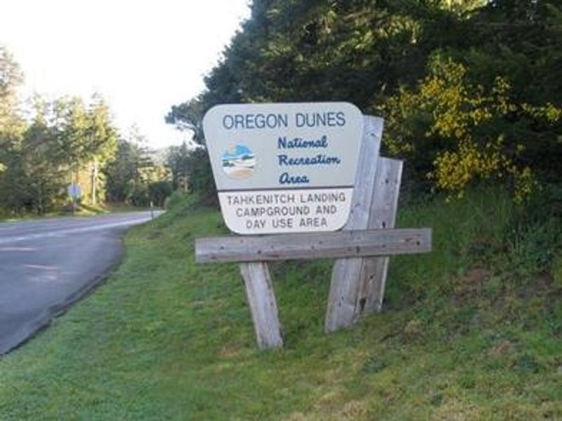 Tahkenitch Landing Campground is located on the shores of Tahkenitch Lake within the Oregon Dunes National Recreation Area, 9 miles north of Reedsport and 13 miles south of Florence. The campground offers a variety of sites: lakeside locations (sites 1-8) accommodate tents and small campers with no turnarounds, while larger hillside sites overlook the lake and can fit RVs. The grassy campground is surrounded by coastal trees and shrubbery, including mixed pine and cedar. The 2,118-acre lake is popular for boating, swimming, and fishing for cutthroat and steelhead trout, largemouth bass, and yellow perch. A boat ramp is available at the campground. Across Highway 101, the Tahkenitch Dunes Trail weaves through conifer forest and across open dunes to reach a Pacific Ocean beach. Wildlife watching is popular, with nearby protected nesting areas for the snowy plover, a small shorebird. Each campsite includes a picnic table and fire ring with grill, and a day-use picnic area is also available.