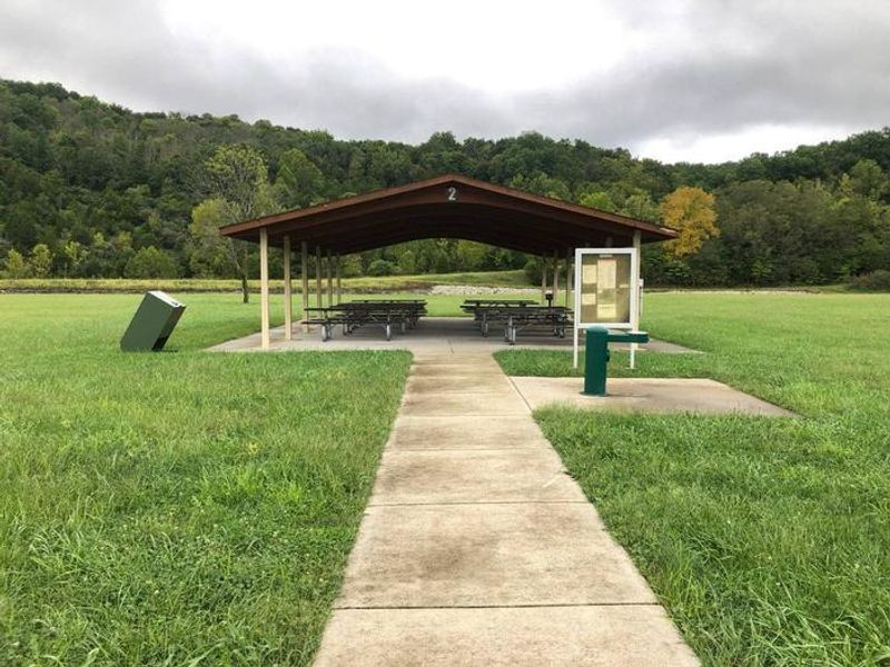Tailwater Shelter 2 is a day-use group picnic shelter located at the base of Brookville Lake Dam in Franklin County, Indiana. The shelter sits near the Whitewater River, which flows within sight behind the facility, providing excellent access to cold water trout fishing in the tailwater below the dam. The site features a large open grassy area surrounding the shelter and offers 98 parking spaces. The shelter comes equipped with electric hookups, a water spigot/fountain, and a cooking grill. Modern indoor restrooms are located nearby. The facility is managed by the U.S. Army Corps of Engineers and is available for reservation through Recreation.gov on a first-come, first-served basis. Special structures such as tents, canopies, or unique decorations outside the shelter footprint require advance approval from the Corps manager. Beyond the shelter, visitors enjoy access to the Whitewater River for canoeing, kayaking, and rafting directly below the dam. Brookville Lake itself offers 51 miles of shoreline with opportunities for boating, water skiing, swimming, camping, fishing, hunting, hiking, and horseback riding. The Tailwater Visitor Center is a short drive away and provides exhibits and information about the lake and Corps missions in the Ohio Valley.