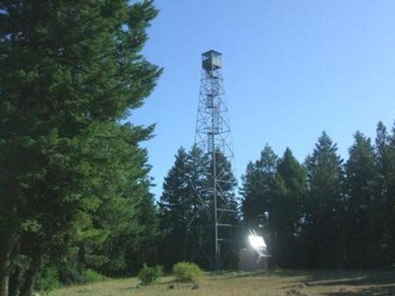 Tamarack Cabin offers outdoor enthusiasts a historic cabin with epic views atop Tamarack Mountain at 4,979 feet elevation. The site was originally used as a fire detection lookout, starting with a platform built on a high tree in 1925. It was replaced with a 96-foot Aermotor tower in 1933, and a neighboring cabin was built to house Forest Service employees. When the cabin burned down in 1966, the utility shed was converted into housing, which is where guests stay today. The tower still stands and may be staffed during summer months. The cozy one-room cabin accommodates up to four guests with two sets of twin bunk beds. It comes equipped with propane lights, a heating stove, and a cook stove, along with cookware, silverware, and dishes. A picnic table and fire pit are located near the cabin for outdoor dining and campfires when fire danger levels permit. From the cabin, a short walk through the trees awards unique opportunities to view miles of the Umatilla National Forest from sunup to sundown, overlooking the John Day River basin between Spray and Kimberly. Over 26 miles of hiking and horseback riding trails on the Heppner Ranger District can be accessed from the cabin. Plentiful fishing opportunities abound in nearby streams and Bull Prairie Lake. Many roads are open to off-road vehicles, and 28 miles of designated trails are available. The area is named after the western larch trees that are particularly plentiful in the Blue and Wallowa Mountains. Wildlife viewing includes western tanagers and dusty flycatchers, while lupine, yarrow, and balsamroot add color to the landscape.