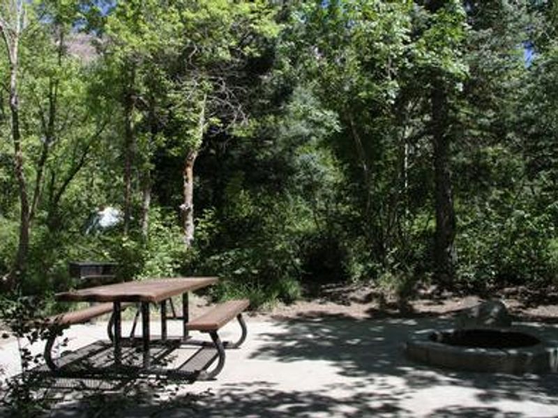 Tanners Flat Campground is located in scenic Little Cottonwood Canyon at 7,200 feet elevation, just 4 miles up-canyon from the junction with Wasatch Boulevard. The campground contains 31 single sites, 3 double sites, and 7 accessible group sites, all situated among a forest of shady pine, aspen, oak, and maple trees. Little Cottonwood Creek runs along the edge of the campground, and the area features vivid summer wildflowers and spectacular autumn foliage. All sites include picnic tables and campfire rings, while group sites also have grills and serving tables. The campground offers vault toilets, paved roads and parking spurs, and an amphitheater available for reservation. A volleyball court is on-site, though campers must bring their own net and ball. Firewood is available for purchase from the host. Some sites are first-come, first-served while others can be reserved through Recreation.gov. The canyon provides excellent access to hiking and mountain biking trails, including popular hikes to Red Pine Lake, White Pine Lake, and Maybird Gulch. Mountain bikers enjoy the Cottonwood Creek Trail and Albion Meadows Trail. Little Cottonwood Creek offers good trout fishing. Rock climbing is popular throughout the canyon. Snowbird Resort is located a few miles up-canyon. Important note: This campground is located in the Salt Lake City Watershed where special regulations are strictly enforced including no pets allowed and no swimming or wading.