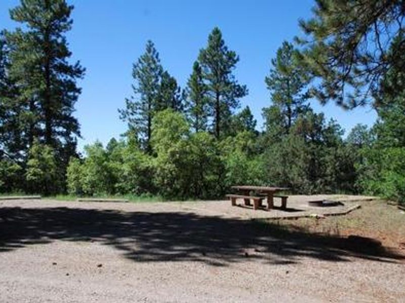 Target Tree Campground is located 7 miles east of Mancos on the north side of Highway 160 at an elevation of 7,643 feet in the San Juan National Forest. The campground's name, also known in the Ute language as "IVIKUKUCH," refers to the Ute Indians' historical use of the area to harvest sap and bark from ponderosa pines as food supplements and their use of the trees for target practice, leaving several scarred trees throughout the area that visitors can still see today. The campground sits on a south-facing hillside overlooking Thompson Park within a ponderosa pine and Gambel oak forest that provides shade in many sites. With 28 sites total, including 17 barrier-free sites and three equestrian sites with corrals for overnight horse camping, Target Tree accommodates a variety of camping styles. Most large and pull-through sites require mechanical leveling of RVs. The area can be hot during summer days but cools off significantly at night. Recreational opportunities include a short accessible interpretive trail to view a historic target tree with historical markers explaining their usage. The campground is known for excellent birding, with signage listing species found in the area. The Narrow Gauge Trail begins near campsite 37 and climbs 3.4 miles to an old railroad grade, where rails were placed just three feet apart to allow trains to navigate through the rugged mountains. The campground serves as an ideal base for day trips to Mesa Verde National Park, Mancos, Durango, and other Four Corners archaeological sites.