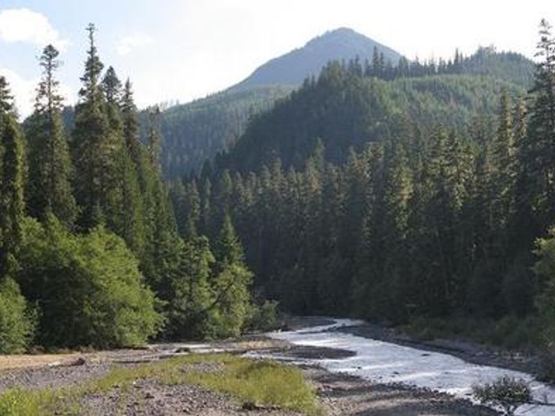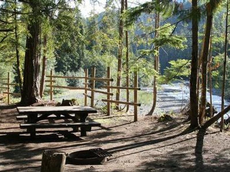 Situated on the banks of the White River in Mount Baker-Snoqualmie National Forest, The Dalles Campground offers visitors stunning scenery and access to a multitude of recreational activities within the Cascade region. Scattered beneath a towering canopy of old-growth Douglas-fir, cedar, and western hemlock, the 45 sites in this campground are widely-spaced and many are positioned at the water's edge, providing a serene riverside setting. Hiking and fishing are the primary recreational draws in the area. The half-mile, barrier-free John Muir Nature Trail begins at the historic picnic shelter near the campground entrance, making it accessible for all visitors. The Dalles River View Trail starts at the west end of the campground loop, marked by the "Big Tree," a 700-year-old Douglas fir measuring 9.5 feet in diameter. Anglers will find excellent fly fishing opportunities on the White River and its tributaries for several species of salmon and trout. The campground is located approximately 26 miles southeast of Enumclaw on Highway 410 and just 7 miles west of Mount Rainier National Park. The White River flows from ice caves at the base of Emmons Glacier in Mount Rainier National Park and joins Huckleberry Creek just below the campground. Wildlife in the area includes mountain goats, coyotes, pine martens, and various migratory birds. Five sites are ADA accessible, and a covered picnic area is available for reservation or first-come, first-served use.