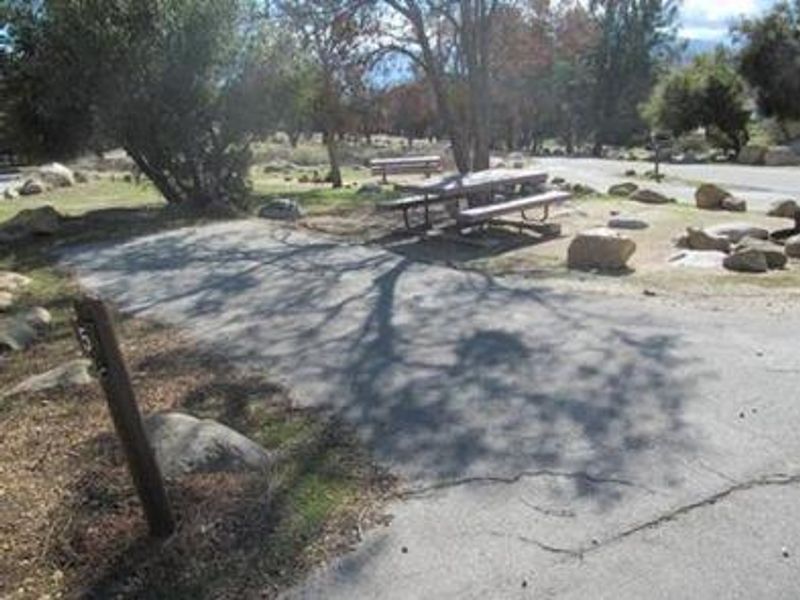 Tillie Creek Campground is nestled among oak trees on the northeast shore of Lake Isabella, a 11,000-acre reservoir that divides the Upper and Lower Kern Rivers. This large developed campground offers 159 individual family sites and four group sites that can accommodate parties from 60 to 150 guests. The facility serves as a hub for water recreation on one of California's largest reservoirs, with swimming, water skiing, windsurfing, and fishing being primary activities. The campground sits at 2,680 feet elevation and provides amenities including flush toilets, hand-pump drinking water, fire rings with grills, picnic tables, a playground, fish cleaning station, amphitheater for programs, and a dump station. Sites can accommodate RVs and trailers up to 45 feet, though no hookups are available. A marina and boat ramps are located just south of the campground. Lake Isabella offers excellent fishing opportunities, with trout during colder months and year-round populations of largemouth bass, black and white crappie, bluegill, and catfish. The campground provides a convenient base for exploring Sequoia National Park, the Trail of a Hundred Giants, and giant sequoia groves in the Giant Sequoia National Monument. Free interpretive programs are offered Saturday mornings during summer months. The town of Lake Isabella, 6 miles south, provides supplies and services.