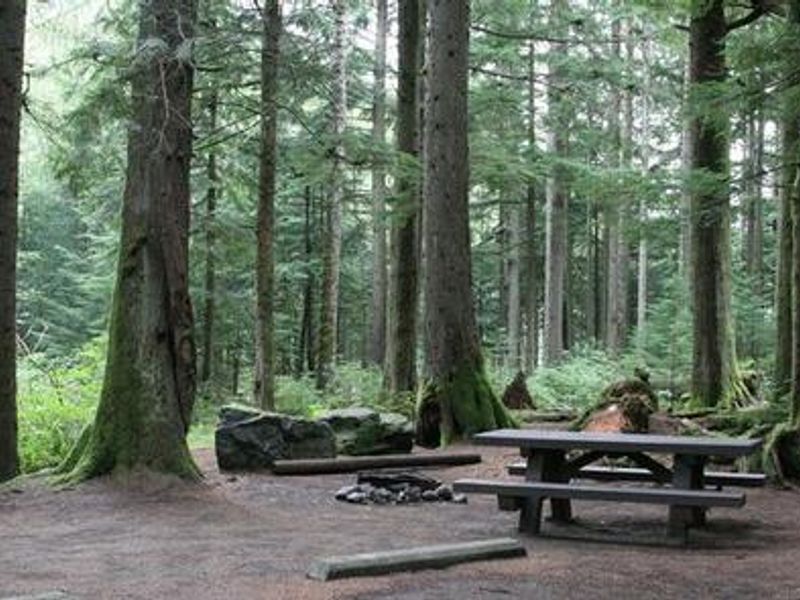 Tinkham Campground is located along the South Fork Snoqualmie River in Mount Baker-Snoqualmie National Forest, offering stunning North Cascades scenery and abundant shade from towering Douglas fir, cedar, and western hemlock. The campground features 47 standard non-electric sites, with a mix of reservable and first-come, first-served availability. The surrounding area provides excellent access to hiking, fishing, and horseback riding in summer and fall. The 0.5-mile Tinkham Discovery Trail is an easy nature path that weaves through moss-covered fallen trees to a small pond, perfect for families to explore wildflowers, insects, and fungi. Nearby trailheads include Annette Lake and Pratt Lake, making this an ideal base camp for exploring the region. Each campsite includes a picnic table and fire ring. The campground provides potable water, vault toilets, and garbage service. The South Fork Snoqualmie River offers fishing opportunities. Access is via I-90 Exit 42, approximately one mile from the highway on Forest Service Road 55. A Recreation Pass is required for parking at nearby trailheads on the Snoqualmie Ranger District.