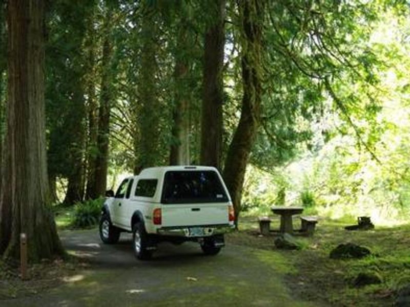 Tower Rock Campground is named for the impressive rock pillar that looms nearby and offers 20 semi-private sites shaded by a mix of cedar, Douglas fir, and maple. Located in the Cispus Valley near the south bank of the Cispus River, the campground sits on the east side of Mount St. Helens with terrain that is mostly open meadow surrounded by hillsides and mountains. The campground is easily accessed via paved Forest Roads 23 and 76 and is located near the Cispus Environmental Learning Center. Anglers can cast for brook trout in the nearby Cispus River, and a privately-owned trout pond also offers fishing opportunities. The Burley Mountain trailhead is located about 4 miles from the Highway 23 intersection off Forest Road 28, providing access to multiple waterfalls including Angel Falls. Tower Rock serves as a convenient base for exploring Mount St. Helens and nearby attractions like Layser Cave Interpretive Site. The campground is managed by a concessionaire and can accommodate RVs up to 30 feet in length, with paved parking spurs at most sites.