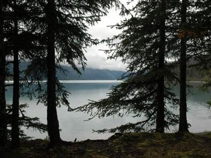 Trail River Campground is set in a stunning location between the Trail River and Kenai Lake, offering spectacular lake, river, and snow-capped mountain scenery amid the hemlock and spruce forests of Chugach National Forest on the eastern Kenai Peninsula. The campground is divided into three distinct loops: Spruce Wood Loop provides ample shade and stellar mountain views; Eagle Point Loop overlooks Kenai Lake; and River Terrace Loop sits nearest to the river. A large group campsite accommodates up to 70 guests and features a timber-frame pavilion, volleyball court, horseshoe pit, and playground. The campground provides excellent access to recreation opportunities. Kenai Lake is home to Dolly Varden, rainbow trout, and lake trout, with productive fishing available from the beach. Within a one-mile radius are five trails including Falls Creek Trail, Crown Point Mine Road, Ptarmigan Creek Trail, and Vagt Lake Trail, all providing access to the Iditarod National Historic Trail. The Falls Creek OHV Trail offers views of Kenai and Lower Trail Lakes for hikers and experienced OHV enthusiasts. Nearby Ptarmigan Creek features a fish-viewing platform for observing spawning salmon in late summer and fall. The campground is located 24 miles north of Seward and 40 miles east of Cooper Landing, within easy reach of world-class destinations including Kenai Fjords National Park and the Kenai River. Moose, brown bears, black bears, sheep, and mountain goats inhabit the area. During winter months when the campground is closed for camping, the entrance road and loops are groomed for freestyle and Nordic skiing.