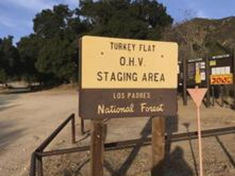 Turkey Flat OHV Staging Area is a year-round dispersed camping and day use facility designed for off-highway vehicle enthusiasts in the Los Padres National Forest. Located on Navajo Road near Parkhill Road, the area provides direct access to 45 miles of marked and rated OHV trails that appeal to ATVs, quad runners, dual sport, and single-track riders of all skill levels. The terrain is mostly rocky and hard packed, with trails leaving from the staging area including Powerline and La Canada. A small warm-up and kids track is available for beginner riders. The campground features an open area of campsites with picnic tables situated under large oak trees for shade, and two vault toilets. Visitors should plan to be completely self-sustainable as there is no potable water or dump station onsite. On clear days, expansive views of the coastline and Sierra Mountains are visible, along with peaks such as Pozo Summit and Black Mountain. This rustic facility operates on a first-come, first-served basis with no reservations. Day use parking costs $10 per vehicle, and overnight camping is $30 per night. The 14-day stay limit applies. All OHV riders must have proper registration, operating spark arrestors, and either a license plate or red/green sticker. A California Campfire Permit is required. The facility is concession-managed by Parks Management Company for the Forest Service.