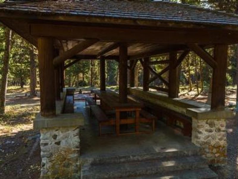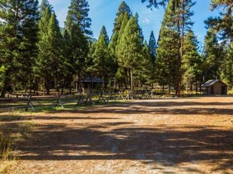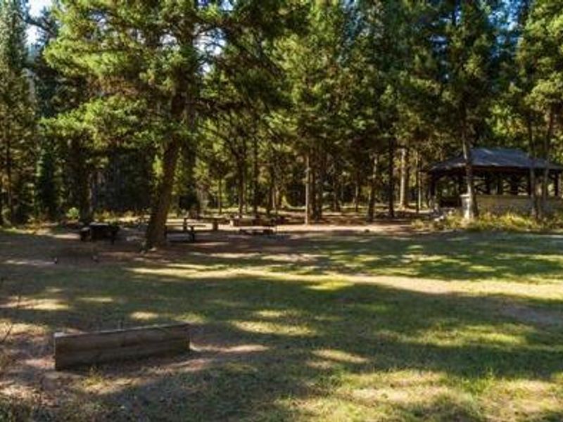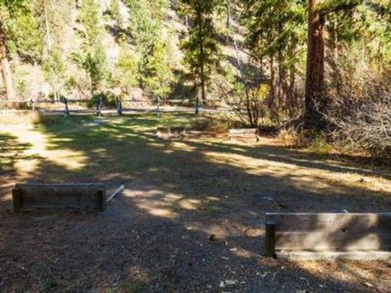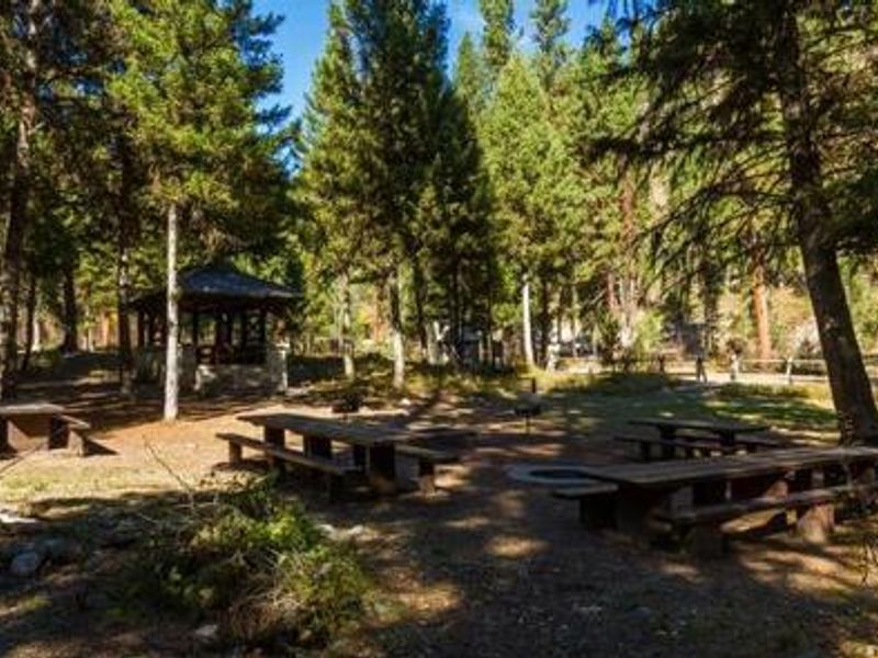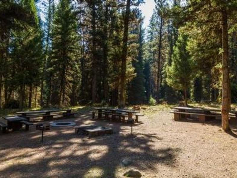 Twin Creek Group Camping Site is part of the larger Twin Creek Campground complex, located 15 miles north of North Fork, Idaho in the Salmon-Challis National Forest. Situated at an elevation of 5,100 feet along Twin Creek near its confluence with the North Fork of the Salmon River, the site is surrounded by large pine trees and brush that provide ample shade and privacy. The group site accommodates up to 35 individuals and features extensive amenities including a large parking area for multiple vehicles and trailers, double vault toilets, drinking water from a hand pump, four picnic tables (two extra-long), a large fire ring, multiple barbecue pedestals, a large barbecue pit, a historic pavilion with picnic table and benches, and two horseshoe pits. There are no electric, water, or sewer hookups available. Recreational opportunities abound in this corner of the Salmon-Challis National Forest. Fishing is available in both the North Fork of the Salmon River and Twin Creek. Hikers can access trails #6108 and #6109 located directly behind the campground. Berry picking can be excellent during certain times of year. Highway 93, which runs near the campground, contains portions of the Lewis and Clark National Historic Trail, offering a connection to the area's rich history.