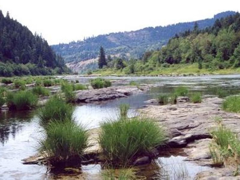 Tyee Pavilion is a reservable riverfront facility perched on the banks of the Umpqua River in southwestern Oregon, ideal for company functions, family reunions, and weddings. Located within the Tyee Campground, the pavilion accommodates up to 50 guests with six large picnic tables, a long serving counter, sink, electrical outlets, and a large barbecue grill. A neighboring grassy area includes horseshoe pits and extra space for picnicking. The Umpqua River is one of only two rivers in Oregon with headwaters beginning high in the Cascade Mountains, meandering down to the Pacific Ocean. The site lies in a broad river canyon surrounded by deeply forested mountainsides. The area offers abundant recreational opportunities including kayaking, canoeing, fishing for steelhead and salmon, wildlife viewing, and birdwatching. Visitors may spot deer, bald eagles, osprey, and Roosevelt elk, particularly in the fall. Nearby attractions include the Umpqua River Scenic Byway, the town of Elkton with its wineries, and the Dean Creek Elk Viewing Area. The Pacific Coast is approximately 50 miles away. Reservations are required and can be made through Recreation.gov.