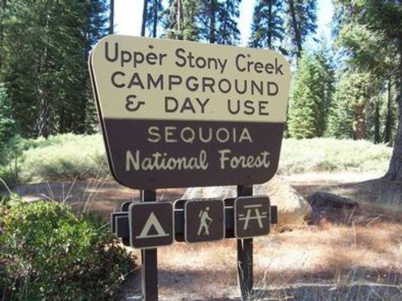 Upper Stony Creek Campground is situated in the mid-elevation Sierra Nevada mountains at approximately 6,400 feet, along the scenic Stony Creek below Shell Mountain in the Giant Sequoia National Monument. The campground features 23 family campsites consisting of a mix of recreation vehicle and single car spurs, each equipped with a picnic table and fire pit. Vault toilets and drinking water from a hand pump are provided on-site. The location serves as an excellent base for outdoor recreation, with the Stony Creek Trailhead providing access to the Jennie Lakes Wilderness for hiking, and opportunities for mountain biking outside wilderness boundaries. The campground is located along the scenic Generals Highway, positioning visitors perfectly between Sequoia and Kings Canyon National Parks for day trips. Nearby Stony Creek Resort, just half a mile away, offers public showers, a phone, groceries, a restaurant, and gasoline. The campground operates seasonally and is managed by ExplorUS under a concessionaire permit with the Sequoia National Forest. Reservations are available through Recreation.gov. Special food storage regulations are in effect due to black bear activity, and campfire permits are required for all fires, barbeques, and camp stoves. The facility charges $34 per night for single sites with an additional $8 fee for extra vehicles.
