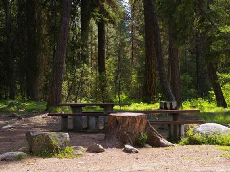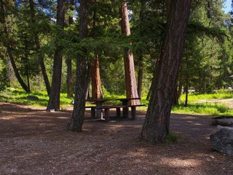 Warm Lake Campground is located near the eastern shore of Warm Lake in Boise National Forest at 5,300 feet elevation. The campground is set in a scenic forest of towering, old-growth ponderosa pine that provides partial shade, with Chipmunk Creek running alongside. While the lake is not visible from the campground itself, it offers easy access to excellent fishing for cutthroat, rainbow, lake, and bull trout, as well as boating, canoeing, and swimming opportunities. Billy Rice Swim Beach is just over a mile away on the north side of the lake, offering day-use picnicking and swimming. A developed swim beach is also available at Warm Lake Lodge, less than a quarter-mile away. A boat ramp is located at nearby Shoreline Campground. The area provides excellent hiking and mountain biking opportunities, particularly on the WeWuKiye Trail No. 252 accessible from Shoreline Campground. For off-road vehicle enthusiasts, the Telephone Ridge Trail No. 112 offers 20 miles of trails for all riding levels, with staging areas within the campground. The surrounding area is home to diverse wildlife including bears, deer, elk, fox, grouse, eagles, osprey, and otters.