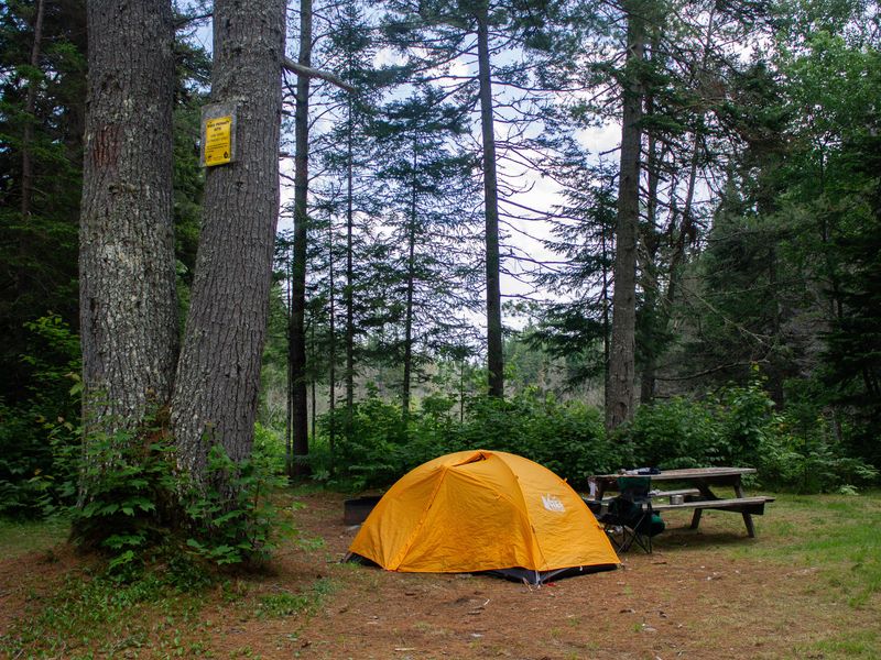 Wassataquoik Campsite is a beautiful primitive backcountry campsite in Katahdin Woods and Waters National Monument, accessible only by foot or bicycle. The site sits along Katahdin Brook on the International Appalachian Trail, positioned near the Wassataquoik Lean-to. Hikers can reach the campsite via a 0.9-mile trek from the Wassataquoik Gate trailhead or a 1.4-mile journey from the Barnard Mountain Trailhead. This is a true backcountry experience with no amenities. There is no water source, no toilets, and no vehicle access. Campers must pack in all supplies and pack out all trash following Leave No Trace principles. Camp stoves are permitted, and campfires are allowed only with a valid Maine Forest Service campfire permit and only in designated locations. Untreated firewood from out of state is prohibited to protect against invasive species. The campsite is available for reservation through Recreation.gov between Memorial Day weekend and mid-October. Unreserved sites are available first-come, first-served on the day of arrival. The site is not ADA accessible and is free of charge.