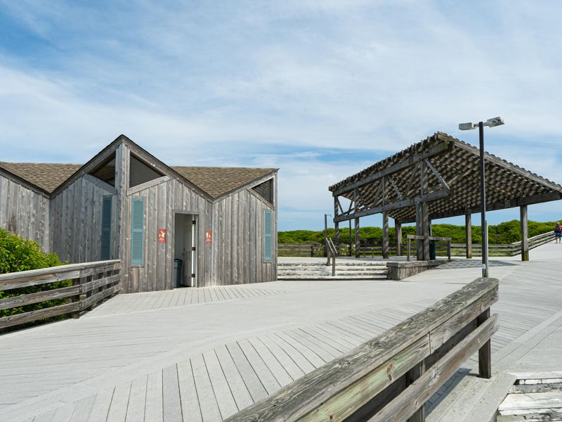 Accessible only by ferry or private boat. Take the Watch Hill Ferry from Patchogue, NY, or arrive by private boat to the Watch Hill Marina. From the ferry dock, walk south past the visitor center and marina, turn left at the end of the boardwalk continuing east past the ranger station. Continue east to the dune station and bathroom pavilion area and turn left. Total walking distance is 0.3 miles. No vehicle access available.