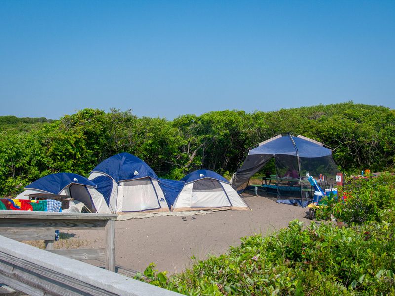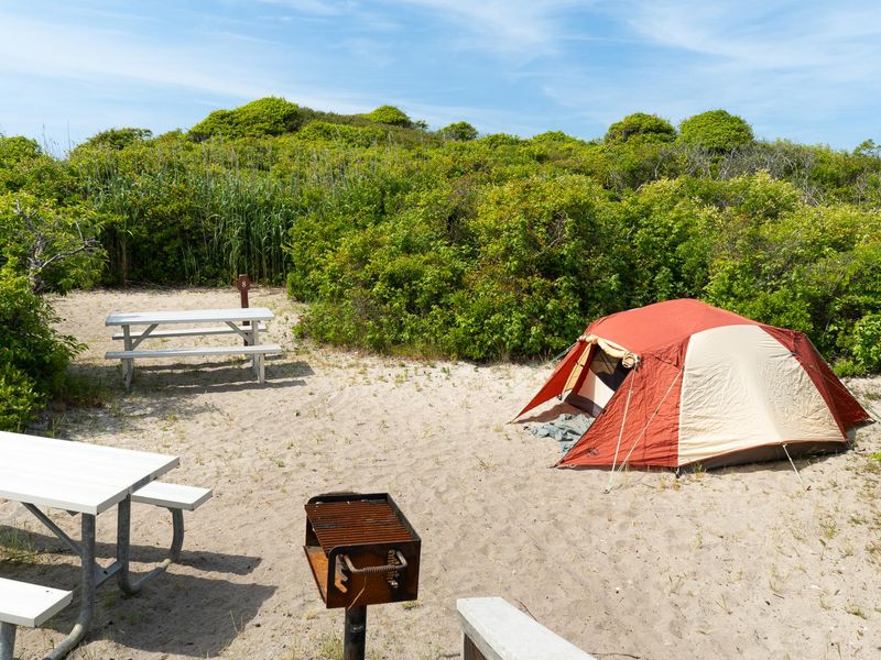Watch Hill Family Campground provides a camping experience unlike any other within Fire Island National Seashore. Situated on the eastern end of Fire Island and accessible only by the Watch Hill Ferry from Patchogue, New York, or by private boat, this unique destination offers 20 sand tent sites and 8 safari tent glamping sites for those seeking a true barrier island experience. The campground's remote location places campers within easy walking distance of pristine ocean beaches, tranquil bay beaches, and the entrance to the Otis Pike Wilderness. The 0.3-mile walk from the ferry dock passes the visitor center, marina, and ranger station before reaching the campground area. Despite its secluded setting, the facility offers full amenities including seasonal hot showers, flush toilets, potable water, and a camp store. Each campsite includes a picnic table and charcoal grill, and one ADA-accessible site features a boardwalk deck with tent tie-down points. Operated by concessioner LoveFINS, the campground combines the adventure of a car-free barrier island with the convenience of established camping infrastructure. The Watch Hill area also features nature trails, ranger-led programs, and a full-service marina. Open flames are prohibited due to brushfire risk, but campers may use camping stoves or the provided charcoal grills. The campground's seasonal operation and ferry-only access make advance reservations highly recommended, especially for peak summer weekends.