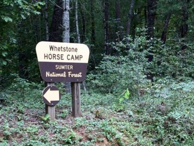 From Walhalla, go north 6 miles on State Highway 28. Turn left onto Whetstone Road for about 5 miles. Go straight at the four-way stop, and drive about 1.5 miles. The pavement will end, and a gravel road will begin. A sign for Whetstone Horse Camp is about 0.75 miles down the gravel road. The camp is on the left.