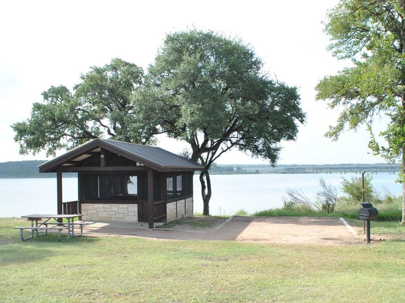 White Flint Park is located on the western shore of Belton Lake's upper section, a 12,300-acre reservoir created by the U.S. Army Corps of Engineers. The campground offers 13 RV sites with 50-amp electric and potable water hookups, along with 12 screened overnight shelters equipped with 15-amp outlets and exterior water faucets. Each campsite features a covered picnic table and grill. The park includes modern amenities such as waterborne restrooms with hot showers and a conveniently located sanitary dump station near the entrance. A two-lane boat ramp provides easy lake access for boaters and anglers, with the ramp remaining open year-round even when the campground is closed seasonally. The campsites are positioned along the shoreline in a partially forested setting, providing a mix of sun and shade. Belton Lake's 136 miles of shoreline offer exceptional recreation opportunities including fishing, water sports, and wildlife viewing. The area attracts hawks, Great Blue herons, waterfowl, songbirds, bobwhite quail, Rio Grande turkeys, and occasional bald eagles. A man-made wetland between White Flint and nearby Winkler Park adds 25 acres of wildlife habitat. Reservations are available through Recreation.gov.