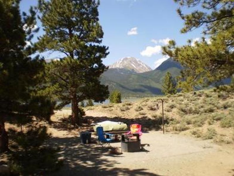 White Star Campground sits at an elevation of 9,300 feet among ponderosa pines and sage on the north shore of Twin Lakes Reservoir, directly beneath Mount Elbert, Colorado's highest peak at 14,433 feet. The campground offers convenient access to Twin Lakes, Colorado's largest natural glacial lakes spanning 2,805 acres, where visitors enjoy sailing, water skiing, and fishing for lake, rainbow, and Mackinaw trout. The campground has three loops totaling 66 sites. Sage and Valley Loops offer reservable sites, while Ridge Loop operates first-come, first-served. Each site includes a picnic table with lantern pole, fire ring with grate, and parking for up to three vehicles. The Continental Divide National Scenic Trail passes by the campground, and the section from Halfmoon Road South to Twin Lakes is open to mountain bikes. Mount Elbert Trail and nearby Mount Massive Wilderness provide additional hiking opportunities in alpine terrain. The campground is generally open from May through September, with weather-dependent dates. A boat ramp and fishing access are located just down the road from the campground. The Top of the Rockies Scenic Byway to Independence Pass and the town of Aspen are nearby attractions.