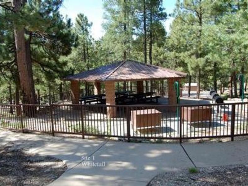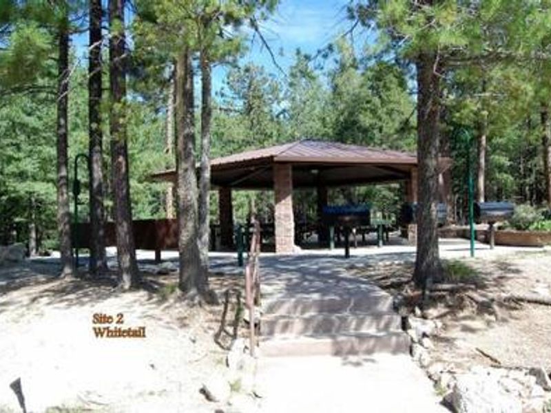 Whitetail Campground sits high on the slopes of the Santa Catalina Mountains at 8,000 feet elevation, approximately 5 miles south of Summerhaven and the summit of Mt. Lemmon. This group campground offers five reservable sites spread among stands of tall ponderosa pines, each designed to accommodate large gatherings such as family reunions, church groups, or corporate events. The sites range in capacity from 35 to 90 people and feature large ramadas with picnic tables, 120-volt outlets for small appliances, large fire pits, grills, bear boxes, and individual vault toilets. Sites are tents-only with no RV hookups. Drinking water is available via hand pump. The campground's high elevation provides a dramatic respite from desert heat, with temperatures often 30-40 degrees cooler than Tucson. The surrounding Coronado National Forest offers excellent hiking opportunities on trails leading to and around 9,157-foot Mt. Lemmon. Nearby attractions include the University of Arizona's Mt. Lemmon Observatory, the village of Summerhaven with its shops and restaurants, and Rose Canyon Lake for trout fishing. The scenic Catalina Highway (also known as Sky Island Scenic Byway) provides the only paved access to the area and is itself a spectacular drive through multiple life zones. Sites must be reserved in advance through Recreation.gov and often book a year ahead for peak season.