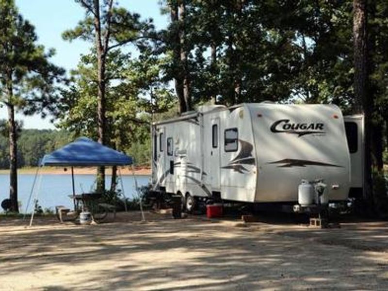 Whitetail Ridge Campground is a waterfront facility operated by the U.S. Army Corps of Engineers on the western shore of West Point Lake, which spans 35 miles along the Chattahoochee River on the Alabama-Georgia state line. The forested campground overlooks the 25,900-acre lake and offers 58 campsites, all equipped with electric and water hookups. Campground amenities include hot showers, laundry facilities, and a dump station. Gates are locked from 10:00 p.m. to 7:00 a.m. and check-in is guaranteed after 4:00 p.m. with checkout at 3:00 p.m. Each campsite has a four-vehicle limit including trailers. West Point Lake provides exceptional recreational opportunities with 525 miles of shoreline and 34 public boat ramps. The lake is renowned for bass, catfish, crappie, and bream fishing, with multiple public fishing piers available. The surrounding landscape features rolling fields and deep forests with excellent fall foliage, plus trails suitable for hiking and mountain biking. A nearly 10,000-acre wildlife management area at the upper end of the lake offers hunting opportunities.
