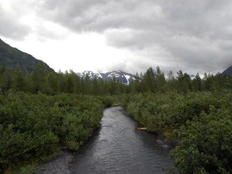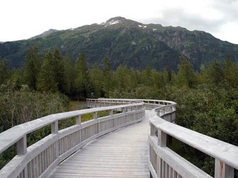 Williwaw Campground is an idyllic established campground situated beside Williwaw Creek near the town of Girdwood in Alaska's Portage Valley. As the largest of two campgrounds in Portage Valley, Williwaw offers 60 sites on paved loops that accommodate both tents and large RVs, making it highly accessible for a variety of camping styles. The campground sits in the heart of Chugach National Forest within the Portage Valley of the eastern Kenai Peninsula. This stunning area is characterized by glaciated valleys, jagged mountains, and glacier-fed rivers. Adjacent to the campground is the Williwaw Salmon Viewing Area, where visitors can observe impressive numbers of salmon spawning in the translucent waters during August. The Williwaw Nature Trail departs directly from the campground, leading to the fish viewing platform and connecting to the Trail of Blue Ice, a popular multi-use path that accesses the Begich Boggs Visitor Center. Wildlife viewing opportunities abound with regular sightings of moose, brown and black bears, mountain goats, lynx, bald eagles, and wolves. The location provides excellent access to numerous glaciated valleys and views of Portage Glacier, which has carved icebergs into nearby Portage Lake over the past 80 years. The campground serves as an ideal base for exploring the surrounding attractions including the Alaska Wildlife Conservation Center, Portage Glacier, Byron Glacier, and the town of Whittier.