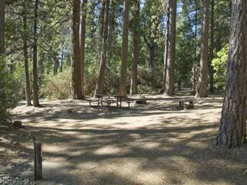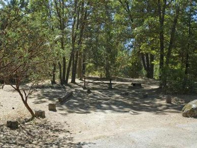 Wishon Campground is located across the street from Bass Lake in the Sierra National Forest's Bass Lake Ranger District at 3,400 feet elevation. The campground offers a shady setting with dense stands of manzanita, oak, cedar, and pine providing privacy between sites. Some campsites offer views of Bass Lake. Each campsite includes a picnic table, stone fire pit, and pedestal grill. The campground provides flush toilets and drinking water. Parking spurs are dirt and may be bumpy due to narrow interior roads. Motorhomes over 24 feet or trailers over 20 feet are not recommended. Miller's Landing Resort adjacent to the campground offers a general store, pay showers, laundry facilities, and restaurant. Bass Lake offers swimming, motorized boating, canoeing, kayaking, water skiing, sailing, and fishing for bass, trout, bluegill, and catfish. Nearby hiking trails include Willow Creek (2.7 miles), Goat Mountain (2.6 miles), Spring Cove (2.6 miles), and Way-of-the-Mono Interpretive Trail (1 mile). The campground is approximately 24 miles from Yosemite National Park's South Entrance. Bald and golden eagles inhabit the Bass Lake area.